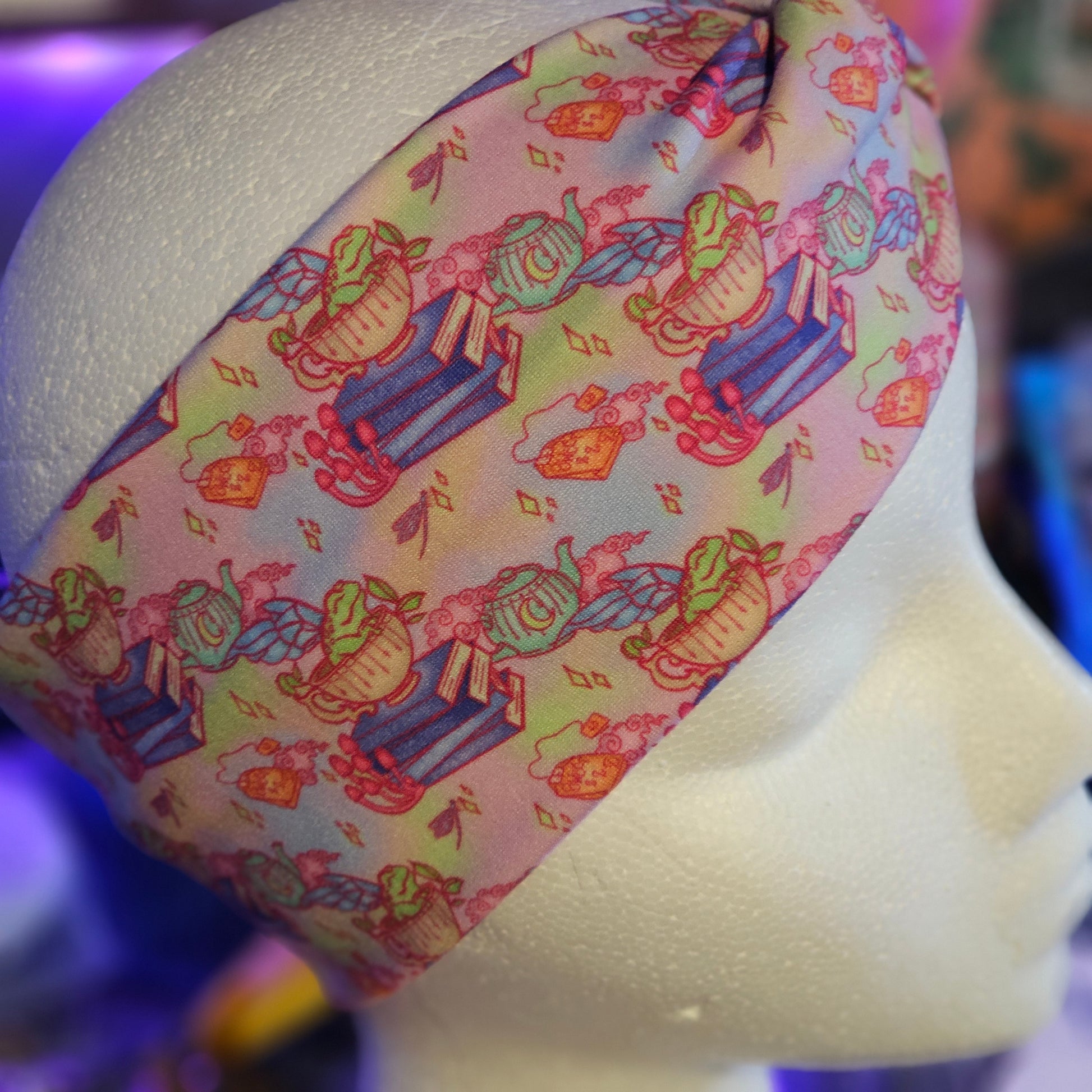 This headband, crafted from stretchy fabric, comfortably fits most adults and teenagers. It offers versatile styling options: wear with the twisted side forward, the flat side forward, or folded for a slimmer appearance.